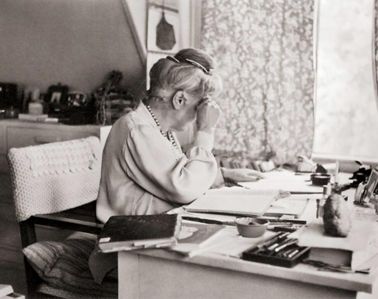 Она слышала много, но вследствие тяжелого состояния не всегда могла записывать. Напрягались шейные позвонки. Во время писания по бумаге струились зеленые и лиловые лучи. По ночам приходилось открывать все окна и двери. Рядом с кроватью стояла вода для окунания рук. Мешки с холодной водой помещались под голову и в ногах. Лицо смазывалось ментолом. Центры скул светили настолько ярко, что казалось, будто под глазами расстилается светящаяся ткань.